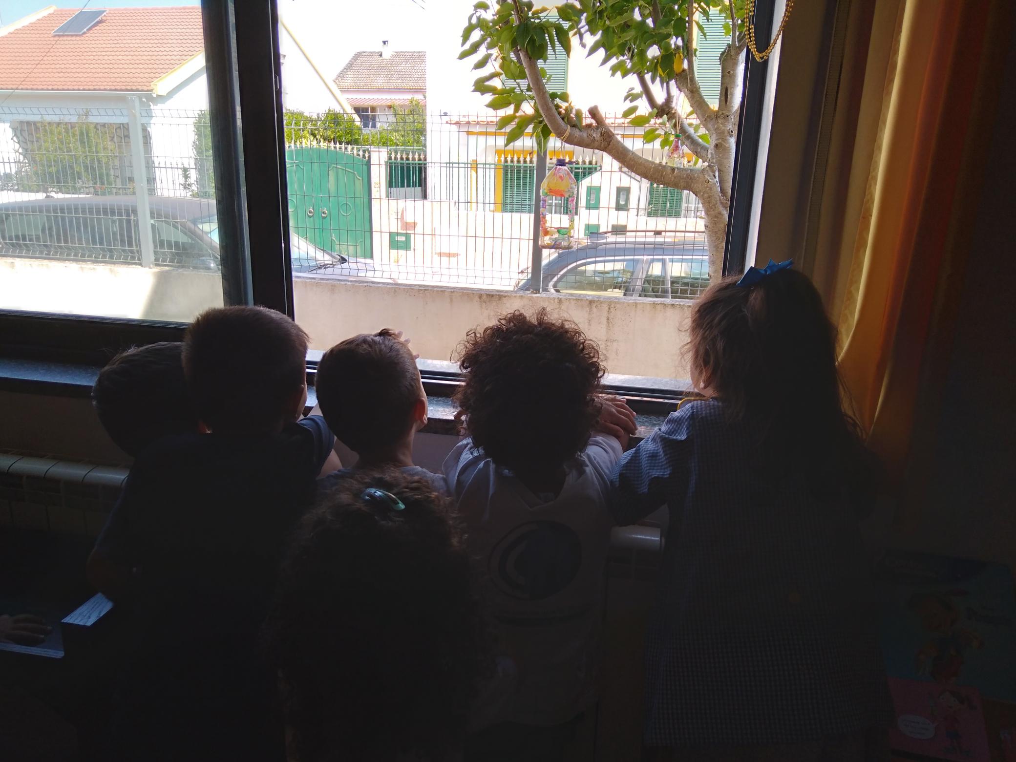 Finalizámos a atividade ao colocarmos no nosso quintal os 4 comedouros, dois deles estão na árvore da nossa janela, que passará a ser um local de observação.