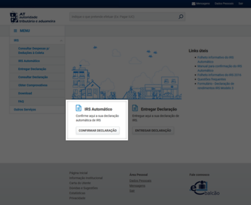 - Assinale o quadrado IRS (e, se desejar, também o de IVA)