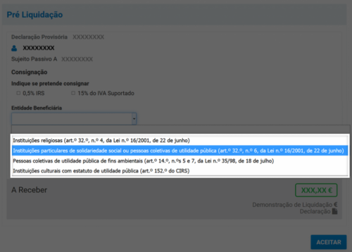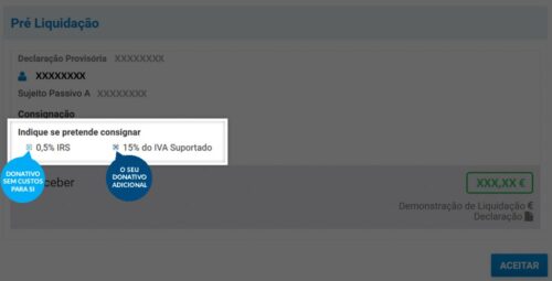 Pode também optar por doar o benefício fiscal de 15% do IVA suportado em faturas de reparação de automóveis, restauração, alojamento, cabeleireiros e veterinários (Artigo 78.º-F, n.º 1 do CIRS).