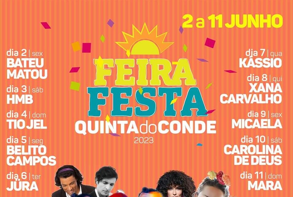 Junto ao recinto da Junta Freguesia da Quinta do Conde irá estar em festa de 17 Junho a 2 Julho com muita animação, onde o Centro Comunitário da Quinta do Conde estará presente com uma tasquinhas de comes e bebes. De 17 junho a 20 junho decorre o 12º FestivalVeja Artigo Completo